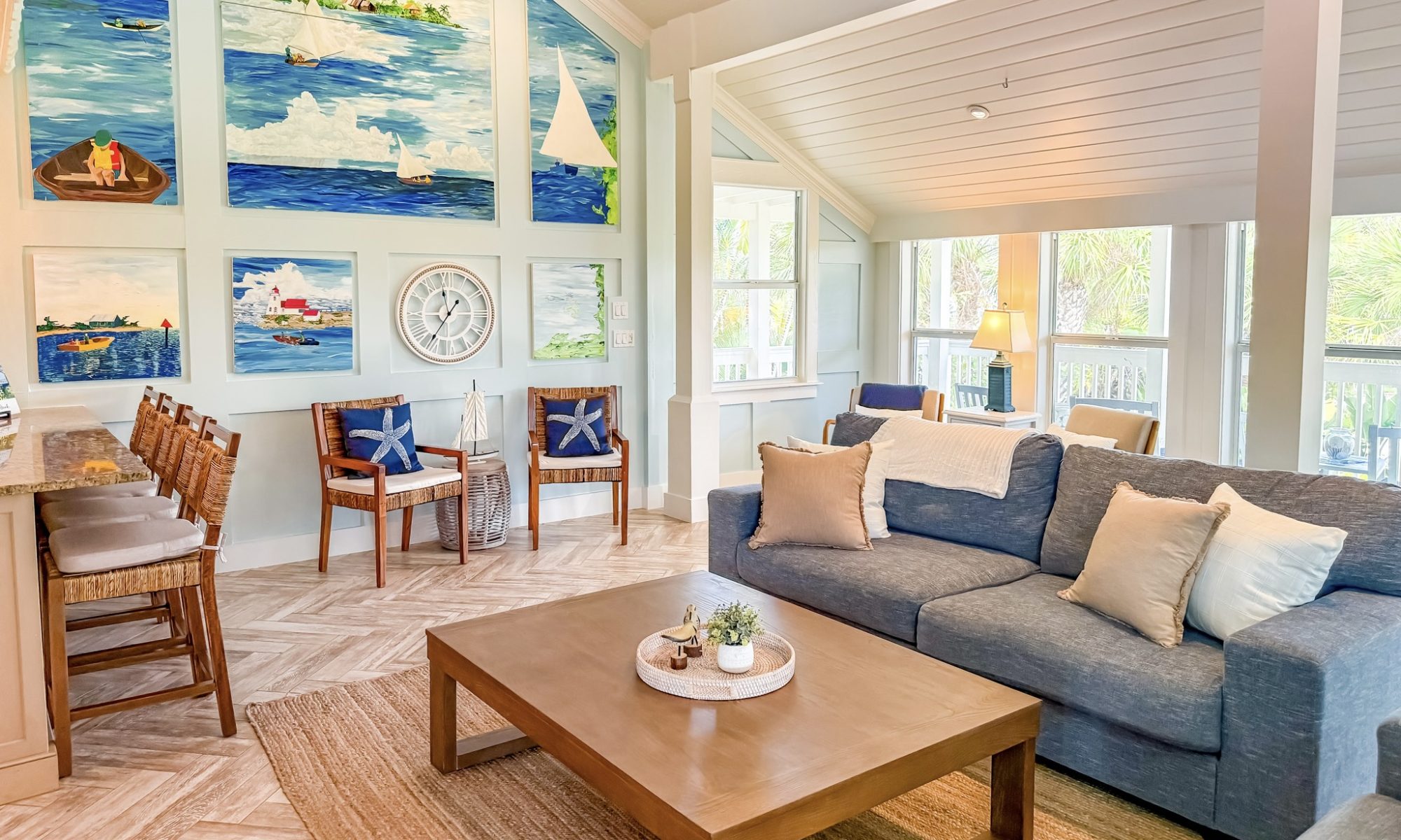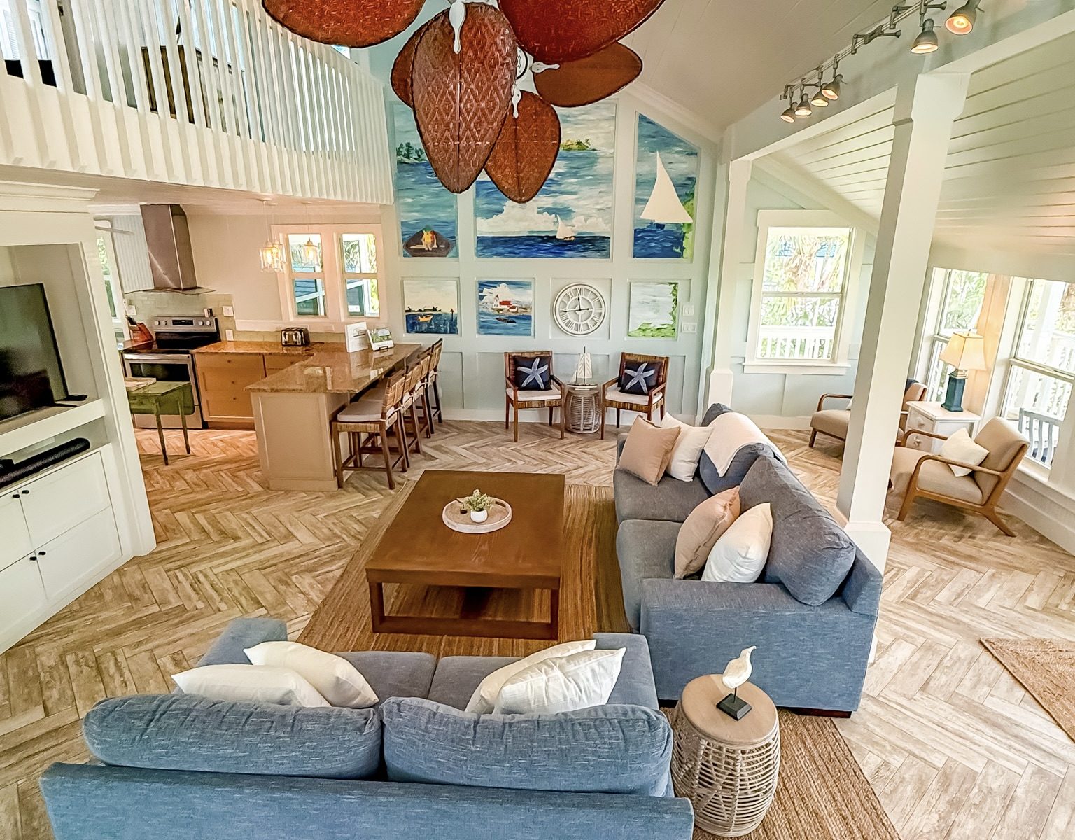Another key feature is the lookout deck accessible from the third floor where you can enjoy bird watching, beautiful ocean sunsets, and nightly stargazing. There is abundant seating for everyone. This is the perfect spot for a morning coffee or evening cocktail!